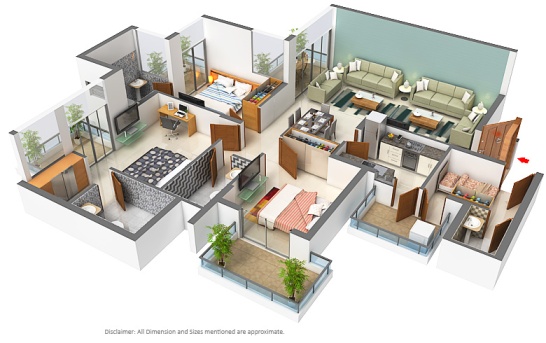 3BHK+ S 2100 Sq.Ft On Request